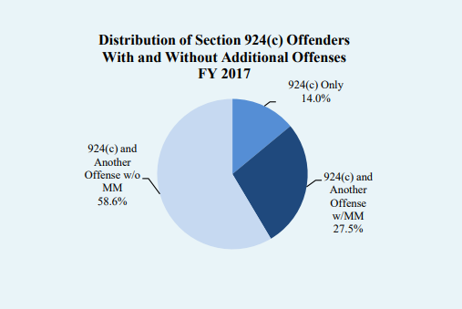 (July 2018) Over one-quarter of all section 924(c) offenders were convicted of another offense carrying a mandatory minimum. In most cases, the other offense was a drug trafficking crime.