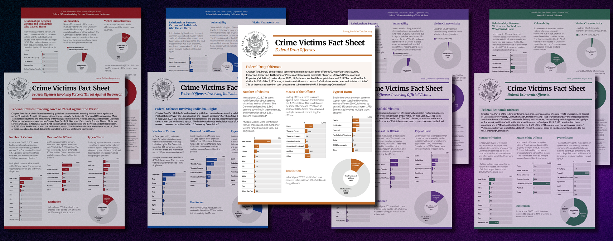 The Commission will release additional fact sheets on crime victims in drug offenses and sex offenses as well as on vulnerable victims and official victims, among others.