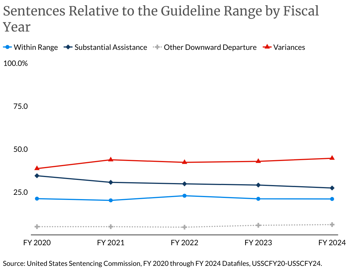 SOURCE: United States Sentencing Commission, FY 2020 through FY 2024 Datafiles, USSCFY20-USSCFY24.