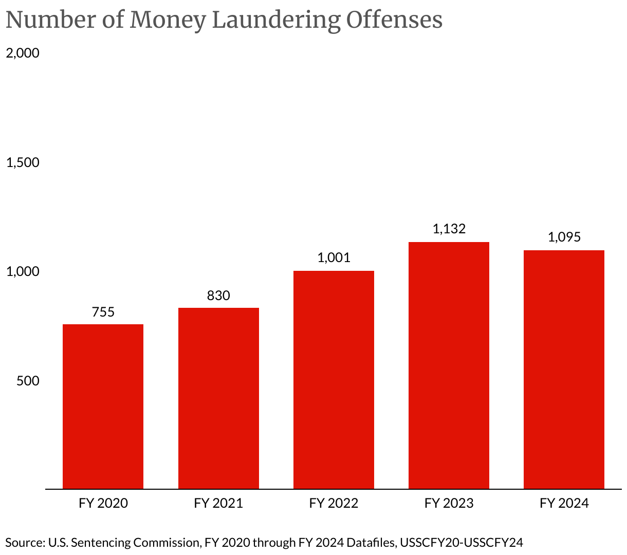 Of the 61,678 cases reported to the Commission in fiscal year 2024, 1,095 involved money laundering (up 45.0% since fiscal year 2020).1,2